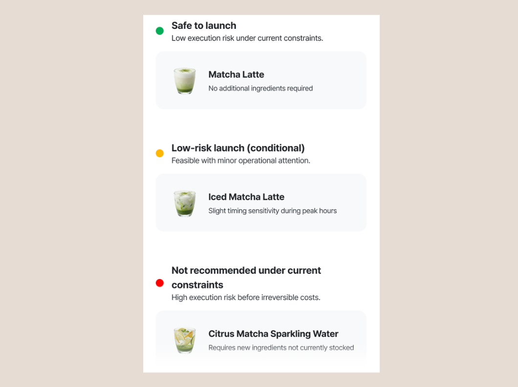 A drink is only worth launching when demand signals, operational feasibility, and menu fit align.